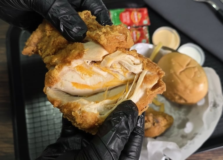 Fresh chicken prepared with our signature Arabian marination, coated in seasoned breading and pressure fried to a crisp golden finish. Clean, balanced flavours with juicy meat and a satisfying crunch, perfect for those who enjoy a timeless broast experience.